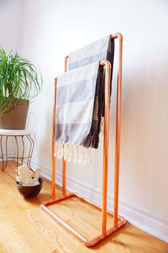 Copper towel stands elevate bathroom organization with their striking industrial-rustic design, offering maximum functionality and aesthetic appeal.