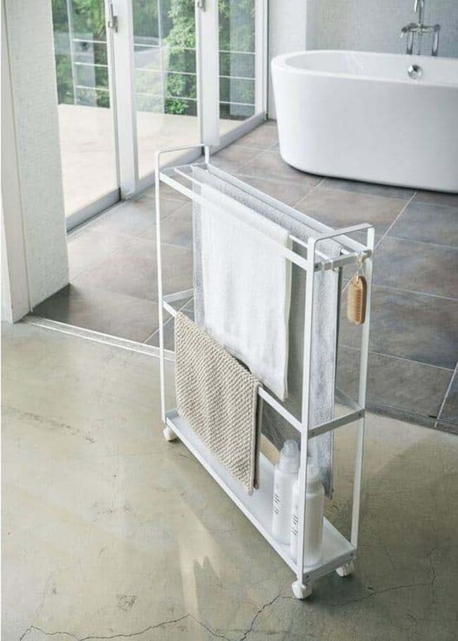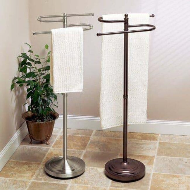 Bathroom enthusiasts adore free-standing towel racks for their smart space-saving design and elegant functionality.