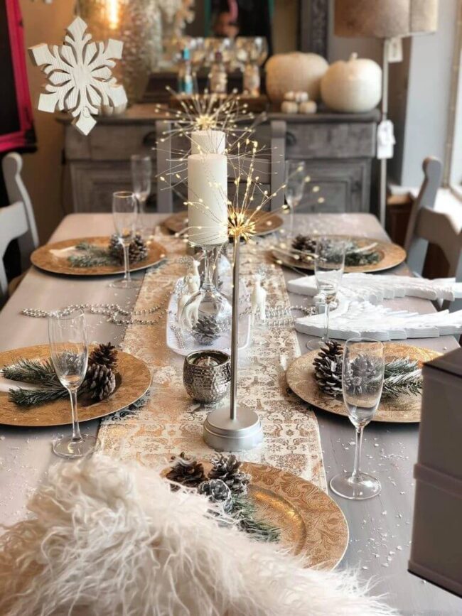 Elegant white accessories strategically placed in the center can transform the space, bringing personality and visual interest to your dining area.