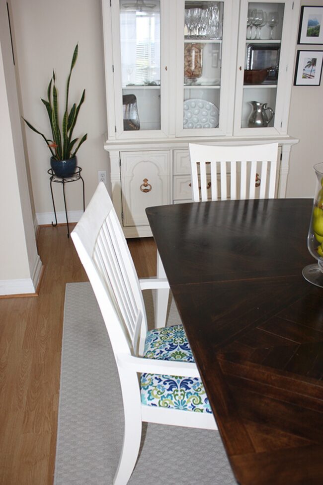 Simple updates like these transform a mundane dining area into a serene cottage-inspired sanctuary.