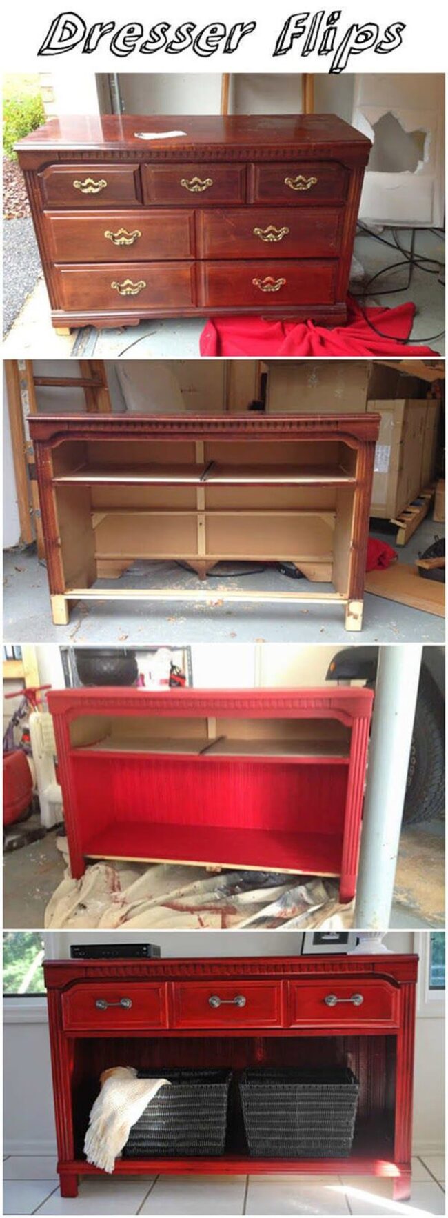 Paint can dramatically change a worn dresser, turning bland surfaces into eye-catching statement pieces.