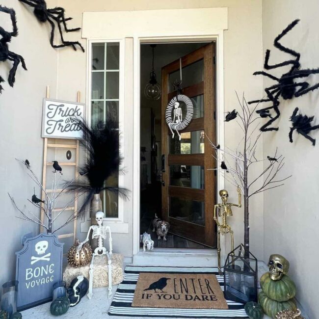 Halloween spirit radiates from every carefully placed detail, creating an inviting and festive entrance.