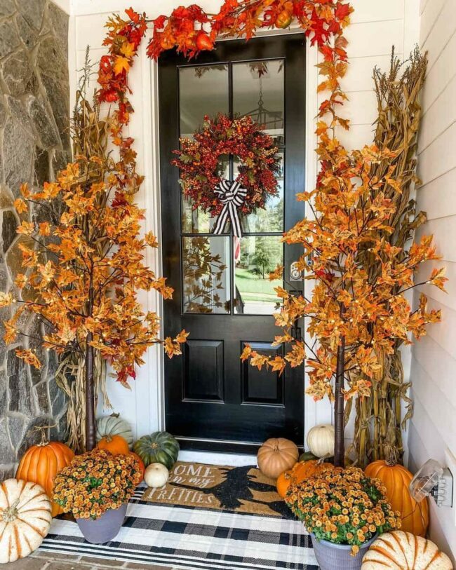 Seasonal touches transform the doorway into a captivating display of creativity.