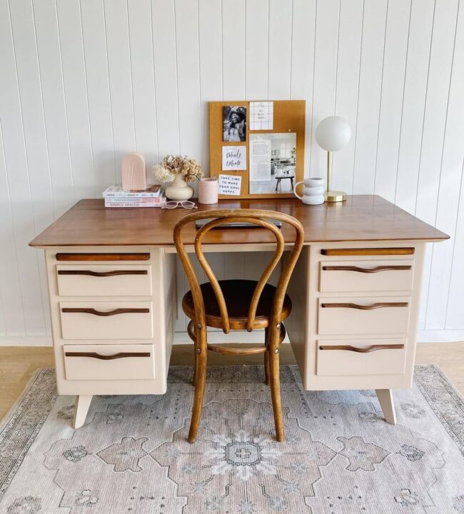 Old wooden desks showcase incredible potential when thoughtfully refinished with modern paint techniques.