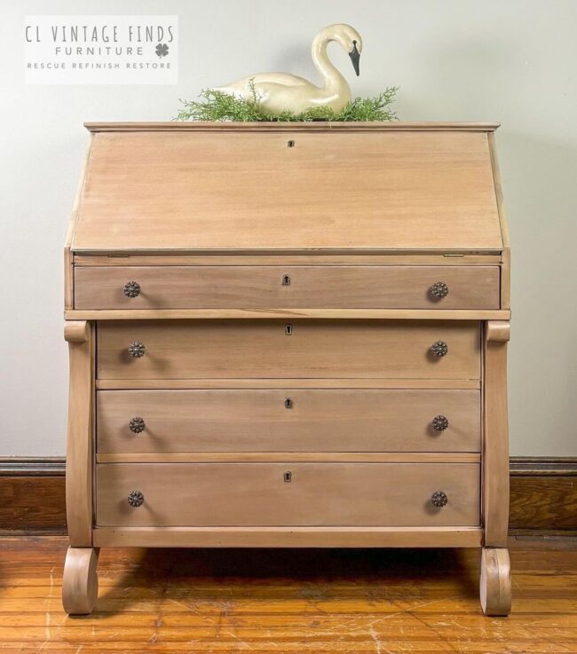 Meticulous preparation allows the color to adhere perfectly, highlighting the desk's elegant lines and unique character.