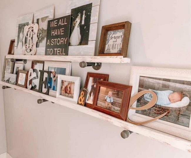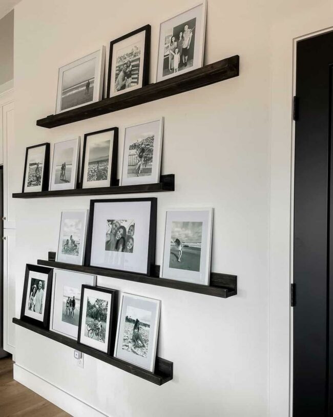 Photo ledges create a dynamic wall display that showcases cherished family memories with incredible flexibility.