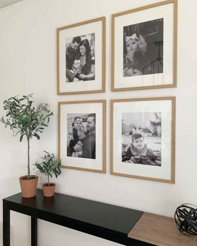 Black-framed photos with white matting create a striking gallery wall that instantly draws eyes and tells your story.