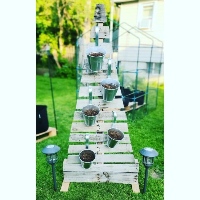 Small galvanized pots attached strategically transform the traditional tree structure into a living, breathing holiday centerpiece.