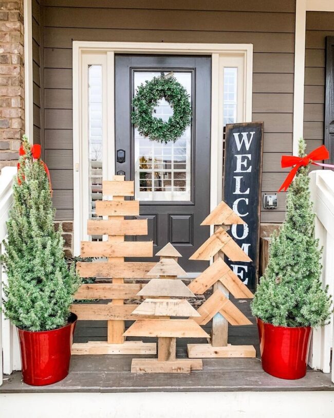 Festive wooden trees make magical holiday statements with their rustic charm and natural elegance.