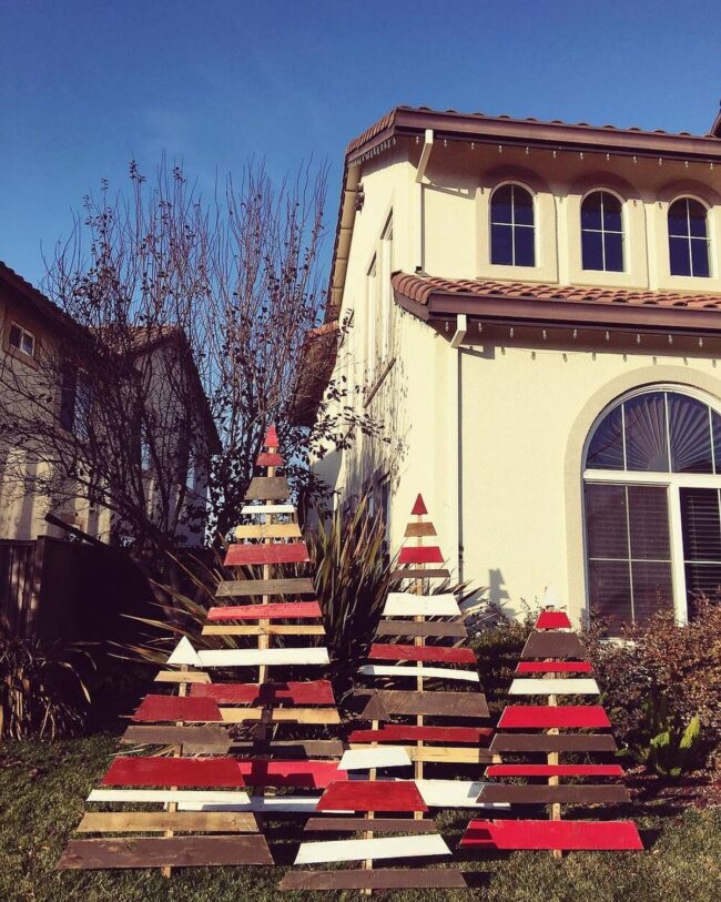 Wooden trees provide a natural, understated canvas for creative holiday expression.