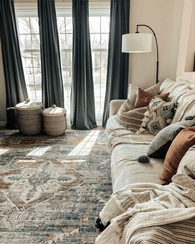 Textured rugs add depth and comfort to the floor, softening each step.