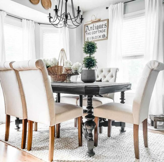 Farmhouse dining rooms blend light and dark elements with stunning elegance, creating an inviting sanctuary where style meets comfort.
