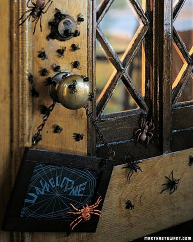 Strategically placed arachnids renew ordinary entryways into mysterious portals of seasonal wonder.