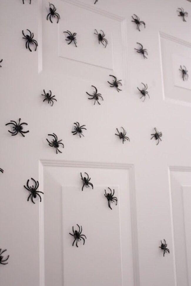 Menacing black spiders crawl around door frames, sending delightful shivers down visitors' spines without overwhelming the space.