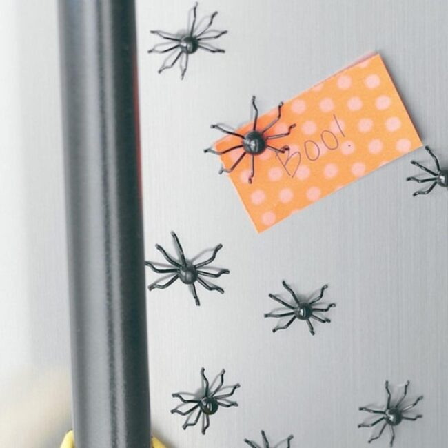 Delicate black plastic spiders crawling across shiny surfaces instantly grab attention and create delightful chills.