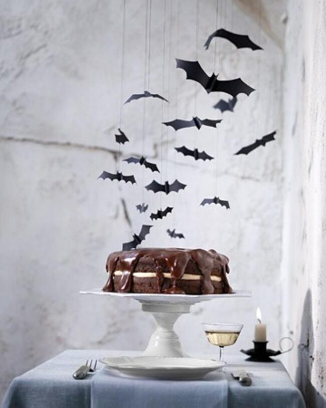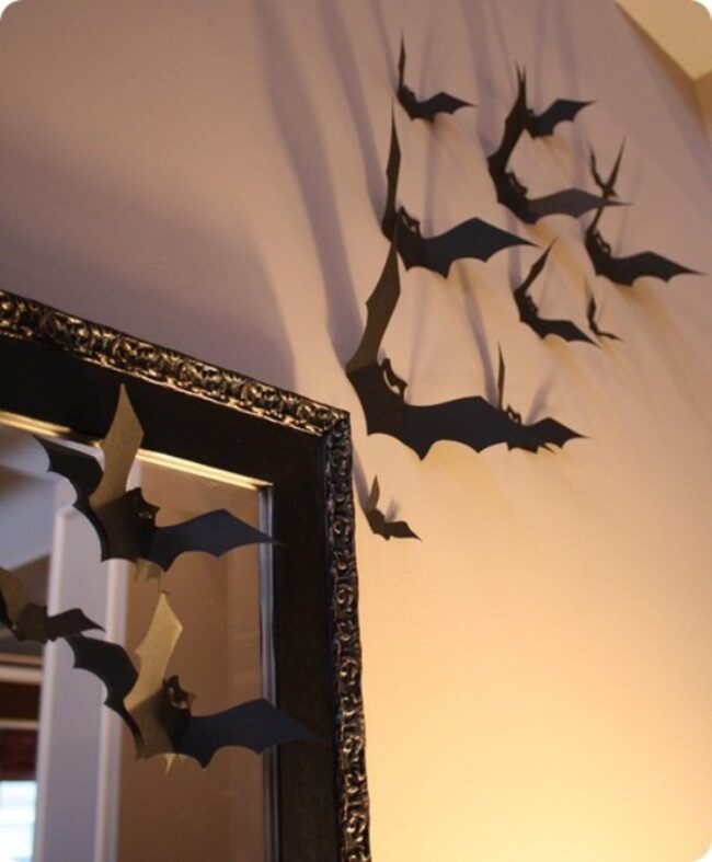 Dark paper bats flutter across walls, adding unexpected drama to your outdoor space.
