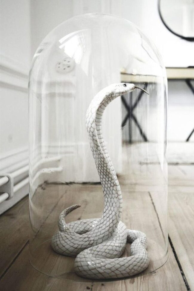 Delicate glass panels dance with dark patterns, while wooden surfaces showcase creepy crawlers positioned just right to spark curiosity.