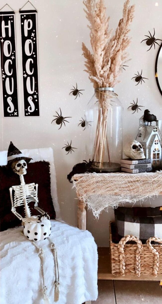 Black spider decals leap playfully across walls, instantly sparking festive energy in every corner.