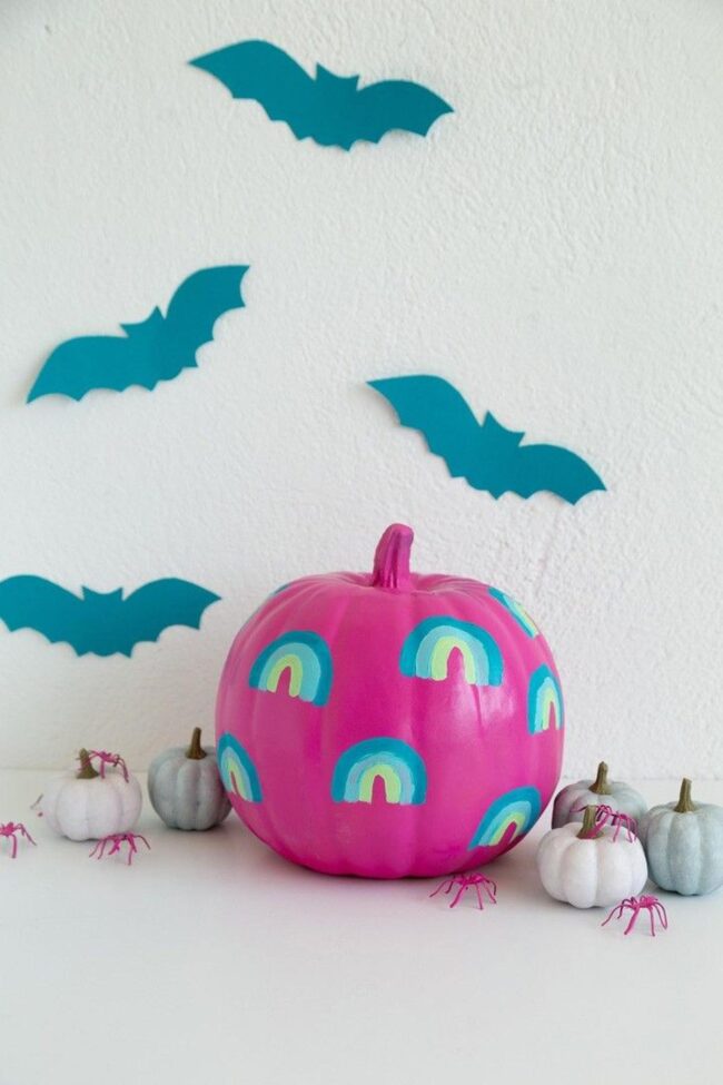 Playful pink pumpkins paired with delicate blue accents create a delightful visual feast that draws your eye across the entire scene.
