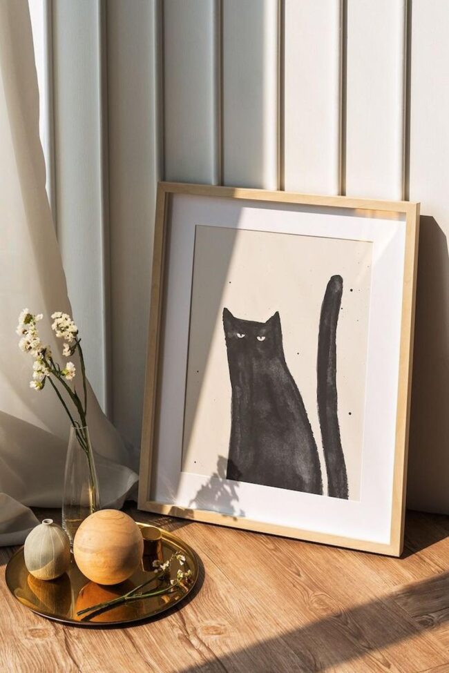 Mysterious owl artwork introduces subtle dramatic flair that keeps guests wondering and wandering around your carefully curated display.