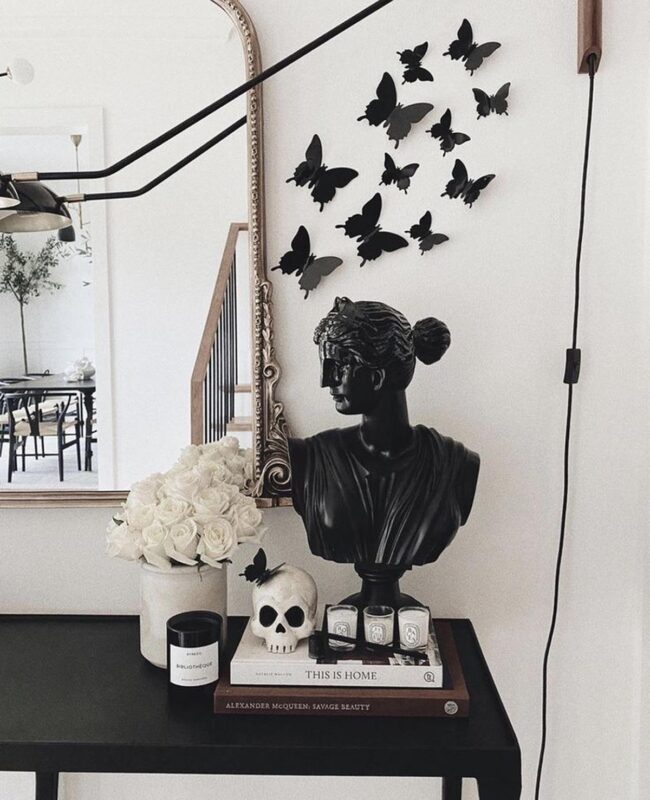 Delicate wing patterns etched on dark butterfly cutouts bring wild nature indoors with effortless charm.