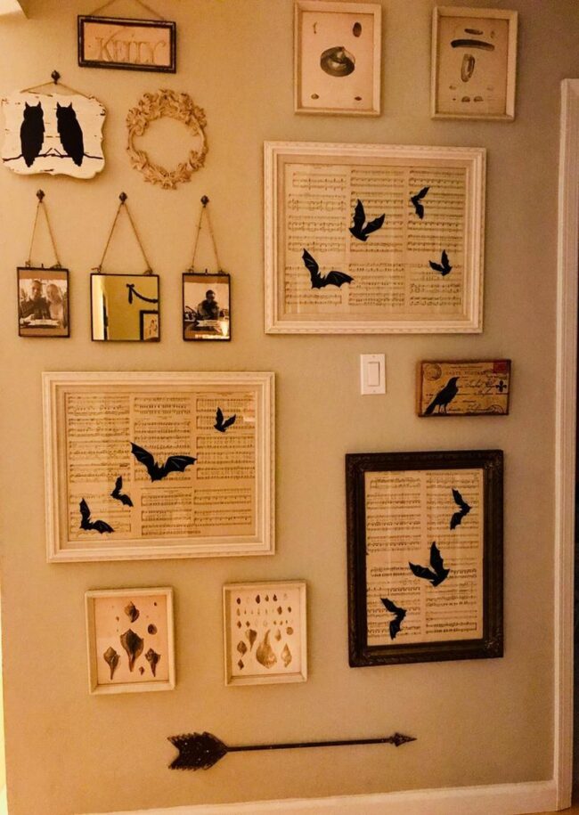 Shadowy bat cutouts sweep across walls, creating mysterious patterns that dance and delight.