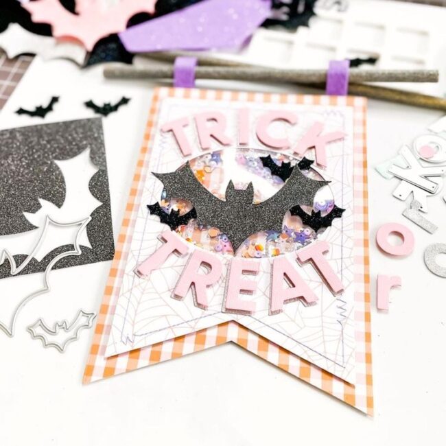 Cheerful orange checkered backgrounds burst with personality, while pink letters spelling "Trick Treat" draw your eye immediately.