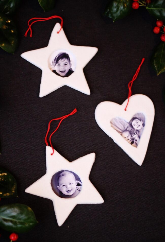 Personalized photo ornaments bring holiday magic straight to your heart with star and heart shapes that highlight cherished memories.