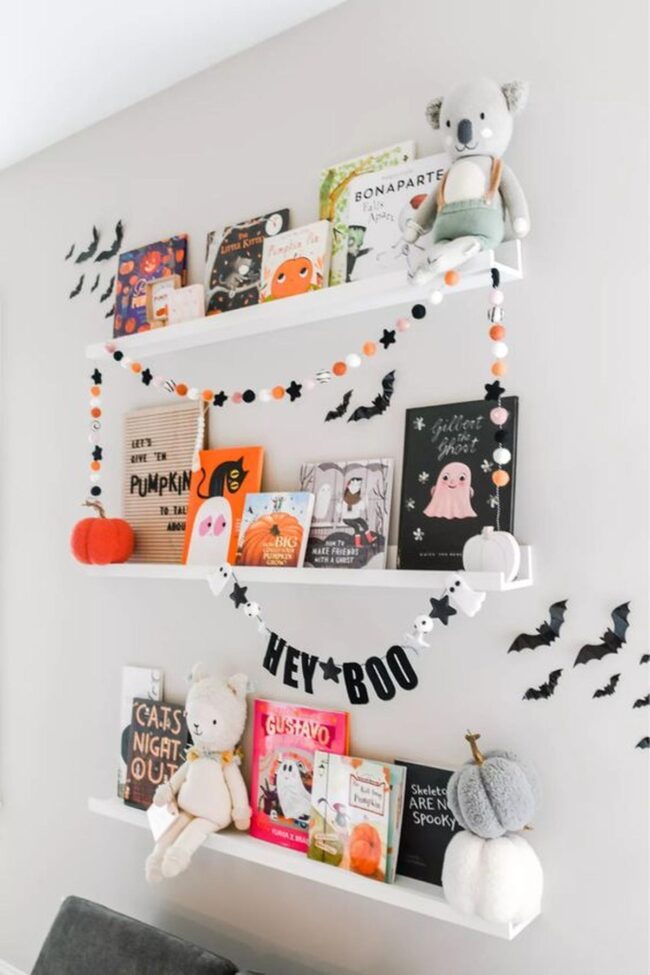 Adorable ghost plushies and petite pumpkins perch strategically, inviting seasonal spirit into every corner.
