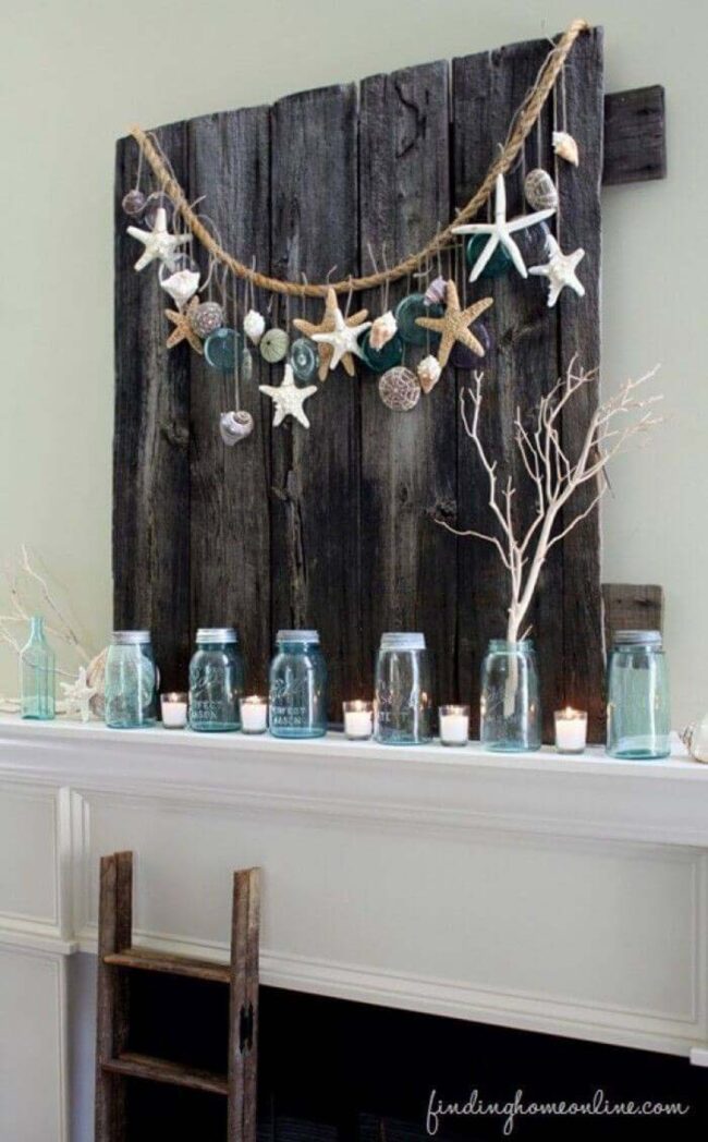 Handcrafted seashell garlands draped strategically around these decorated jars elevate home decor with authentic maritime flair.