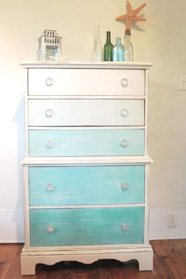 Strategic painting methods like distressing or layering colors can make the dresser look authentically weathered and reminiscent of shoreline charm.