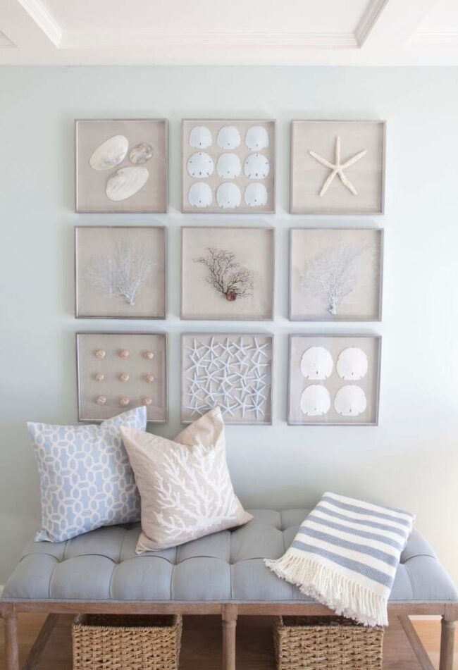 Hallway shell frames capture coastal living, bringing oceanic memories directly to your home's entrance.