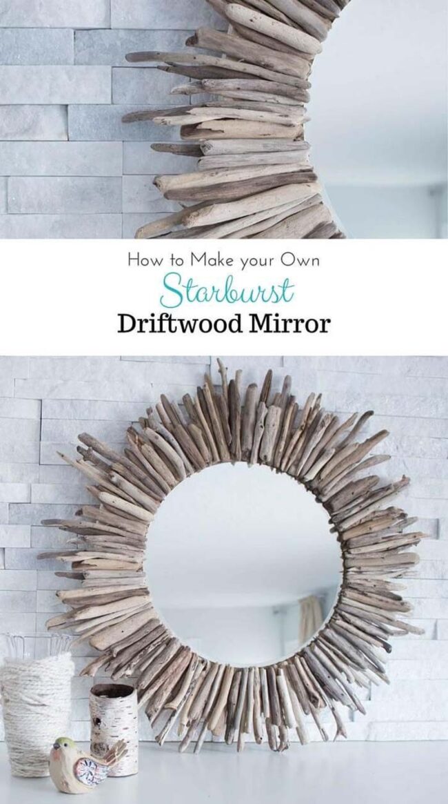 Driftwood mirror art captures ocean-inspired elegance with its stunning starburst design that radiates coastal sophistication.
