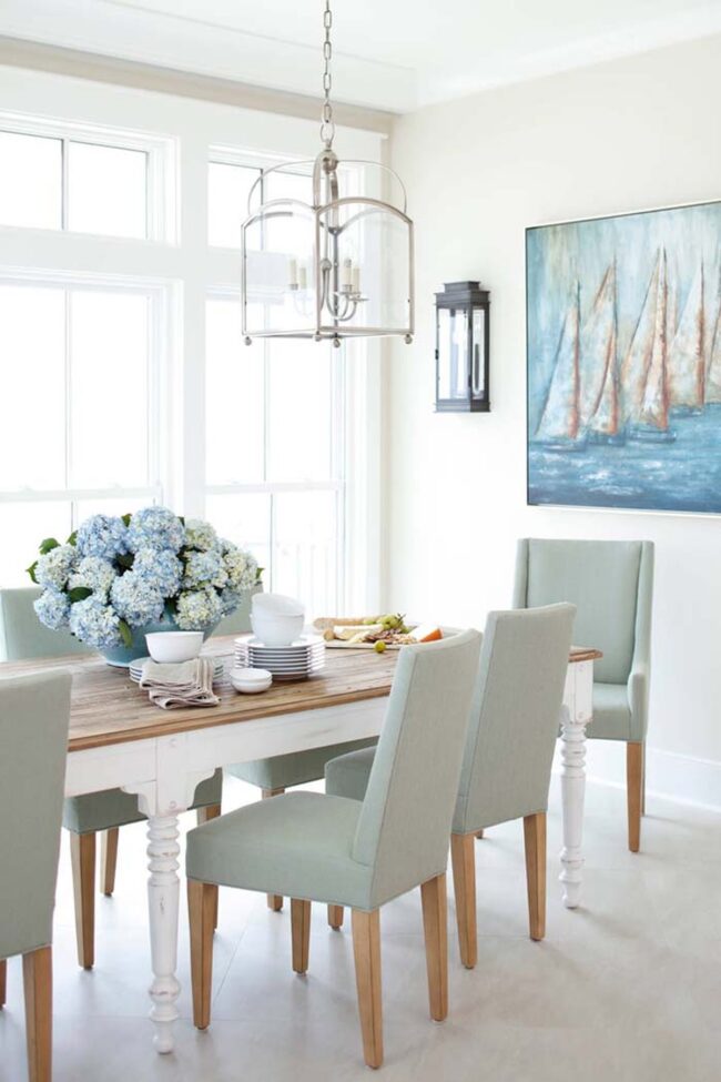 Thoughtful design transforms an ordinary dining area into a peaceful retreat that captures the timeless allure of coastal living.