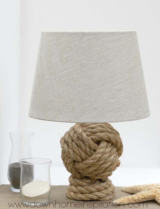 Seaside enthusiasts adore this simple DIY project that requires basic materials like twisted rope, lamp hardware, and creative vision.
