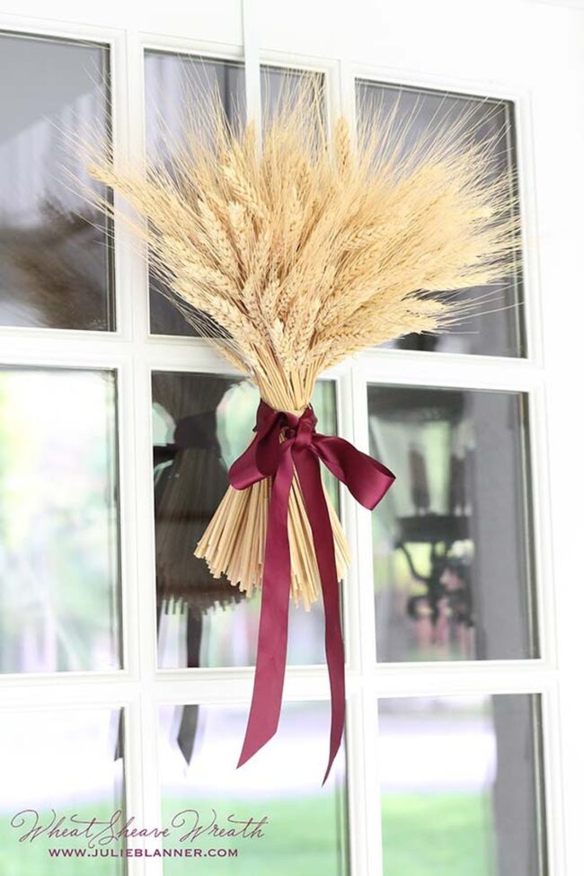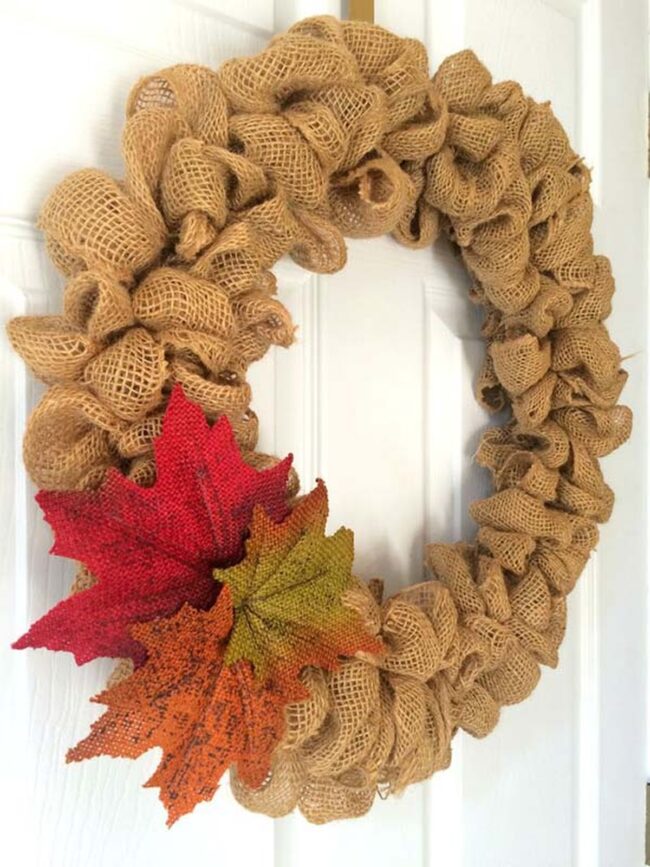 Neutral tones of burlap complement fall's rich color palette, making this DIY project incredibly versatile for different home exteriors.