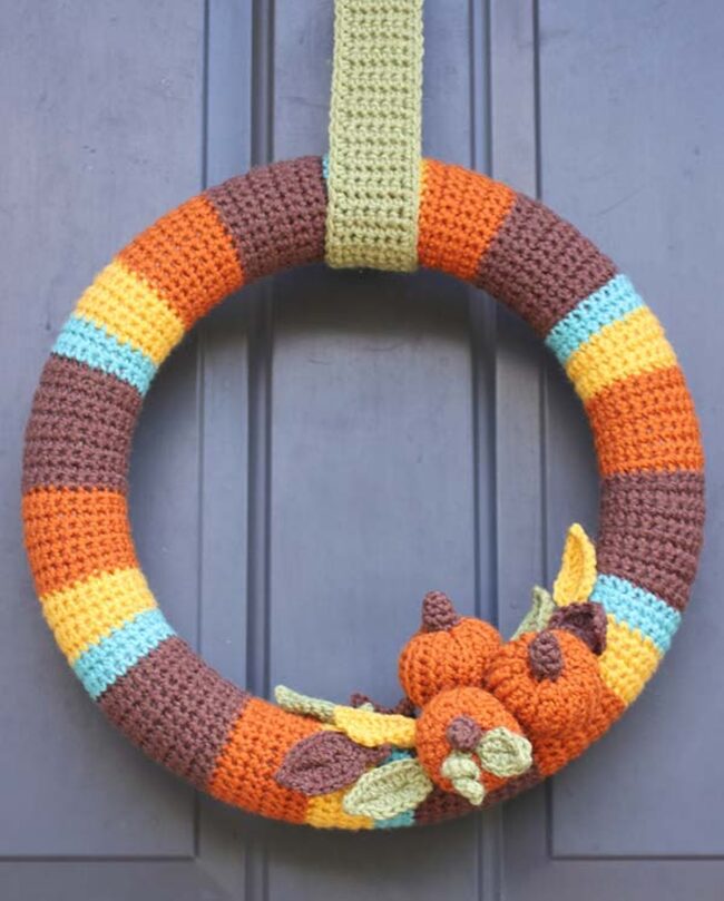 Seasonal colors like deep orange, rust, and forest green enhance the wreath's visual appeal and connection to fall landscapes.