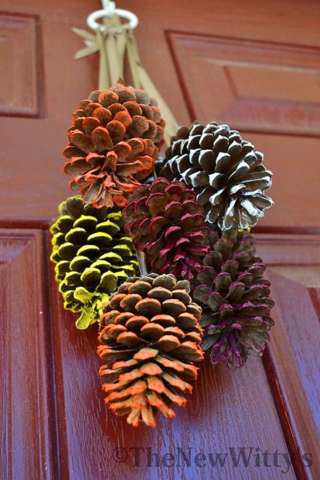 Seasonal decorating becomes magical with pinecone art that instantly elevates home entrances during autumn.