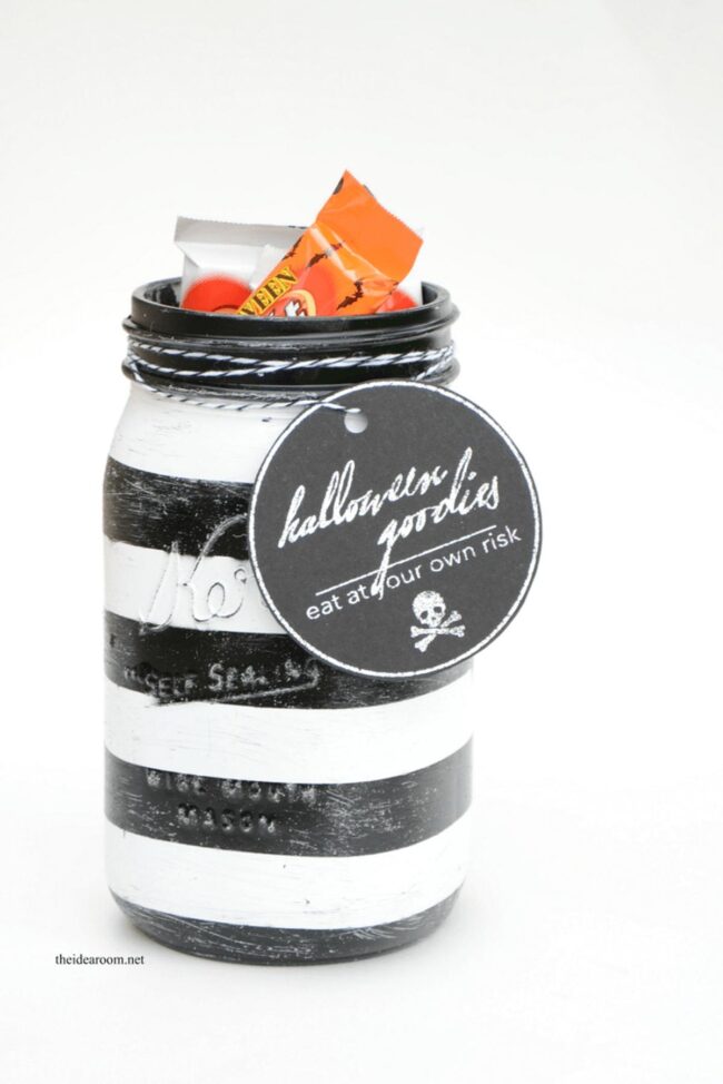 Halloween candy jars burst with personality, sporting bold black and white stripes that instantly catch wandering eyes.