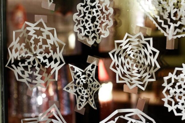 Winter's delicate paper snowflakes turn ordinary windows into stunning visual masterpieces that sparkle with creativity and charm.