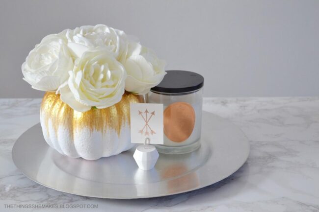 Metallic pumpkins add a surprising shimmer that catches light and brings unexpected charm to any room.