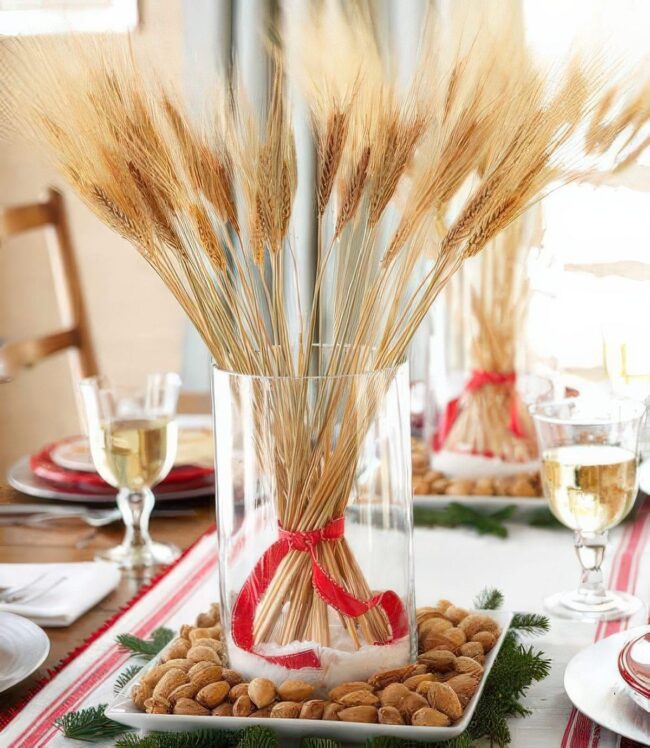 Wheat harvest centerpieces burst with natural magic that instantly draws your eye across dining spaces.