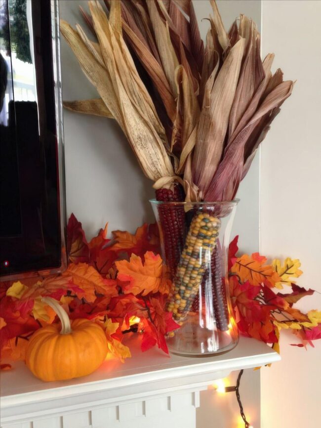 Dried corn kernels nestled in clear glass vases add unexpected visual interest while bringing natural textures into your living space.
