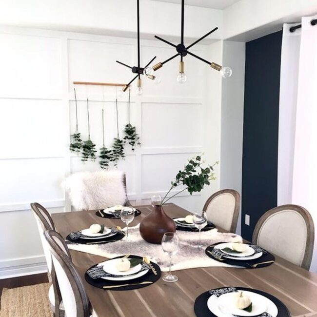 White walls become perfect backdrops for carefully selected artwork that draws eyes and creates depth in your dining area.