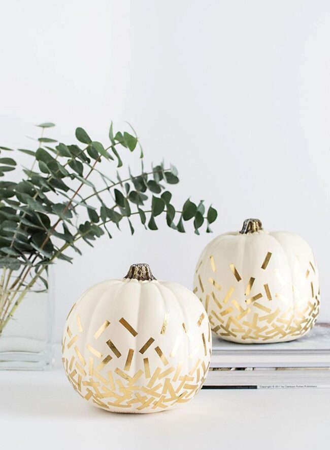 Pumpkins shimmer with stunning gold patterns, catching light across their smooth white surfaces and instantly elevating seasonal decor.