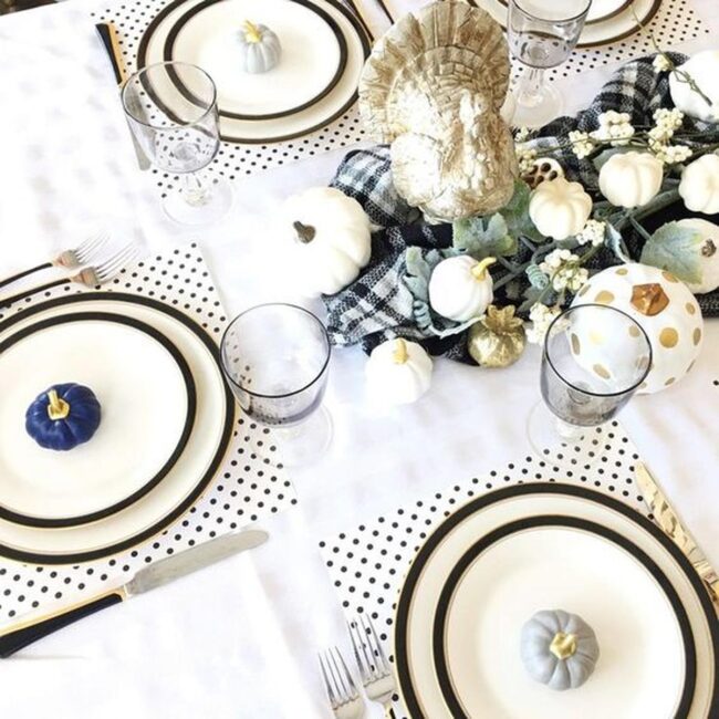 Delicate white pumpkins perched on plates add subtle seasonal magic without overwhelming the scene.