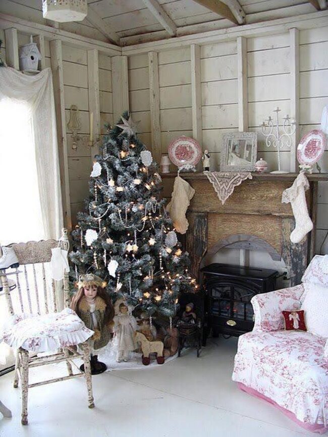 44 Simple Delicate Shabby Chic Christmas Decor Ideas