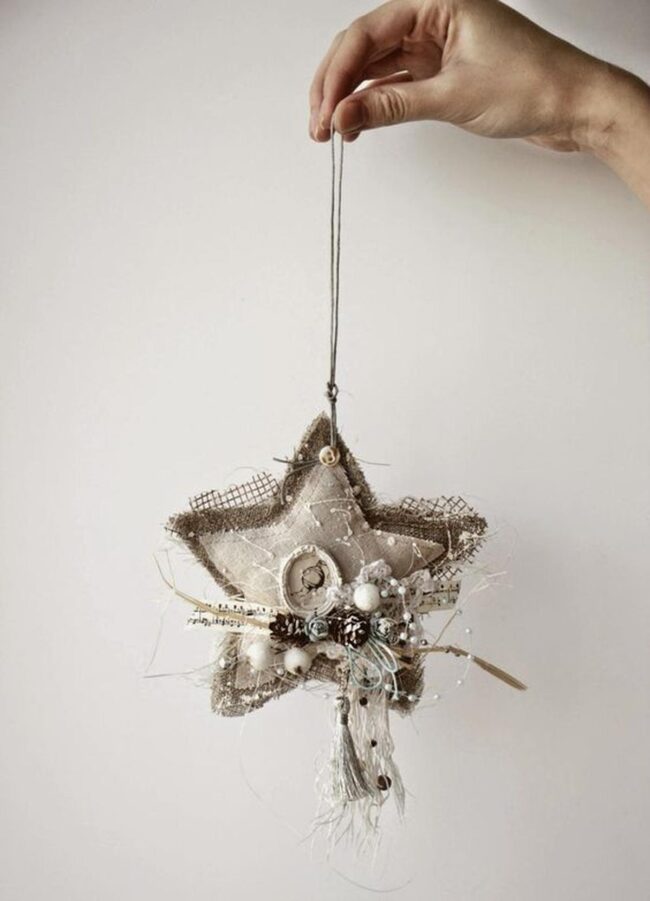 Crafting a star decoration becomes an exciting adventure when you mix natural materials like burlap and linen for an instant home upgrade.