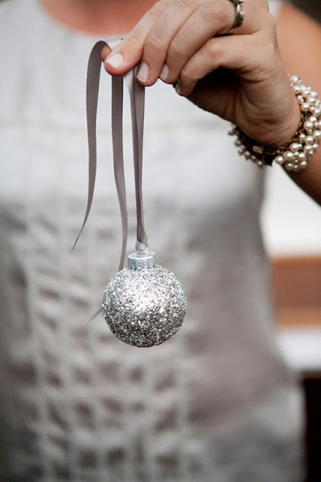 Silver trays become stunning stages for white and metallic ornaments that catch light in mesmerizing patterns.