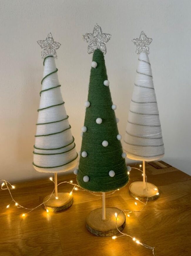 Yarn-wrapped Christmas trees burst with personality, reinventing ordinary spaces into festive wonderlands that spark joy and creativity.